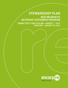 As the official PRO operating and managing the EPR Beverage Containers Program in New Brunswick in effect since April 1, 2024, Encorp met its obligation of submitting a Stewardship Plan to Recycle NB, as required by legislation. This Stewardship Plan – approved by Recycle NB – is available here.