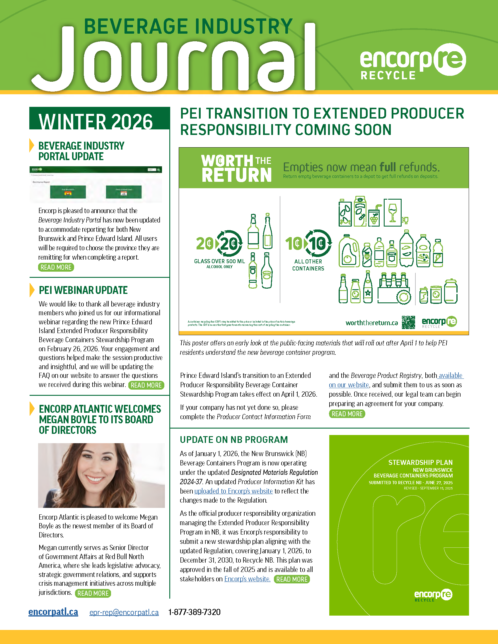 Encorp Atlantic sends periodic updates, notices and news via its seasonal newsletter – the Beverage Industry Journal – as well as via targeted emails.