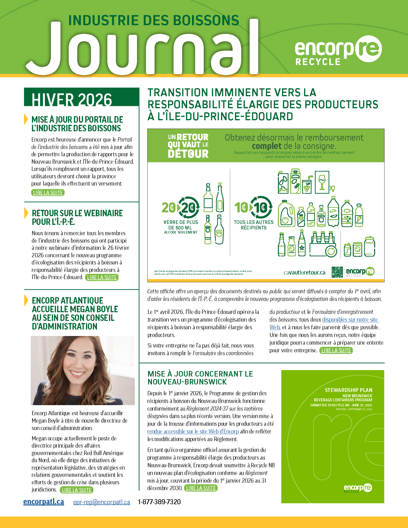 Encorp Atlantique envoie des mises à jour périodiques, des avis et des nouvelles via sa newsletter saisonnière – le Journal de l’industrie des boisson – ainsi que via des courriels ciblés.
