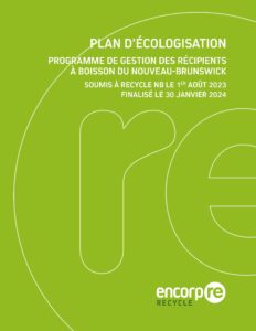 Encorp, en tant qu’éco-organisme officiel responsable du Programme de gestion des récipients à boisson à REP au Nouveau-Brunswick en vigueur depuis le 1er avril 2024, s’est acquitté de son obligation de soumettre un plan d’écologisation à Recycle NB. Le plan d’écologisation a été approuvé par Recycle NB et il est possible de le consulter ici.