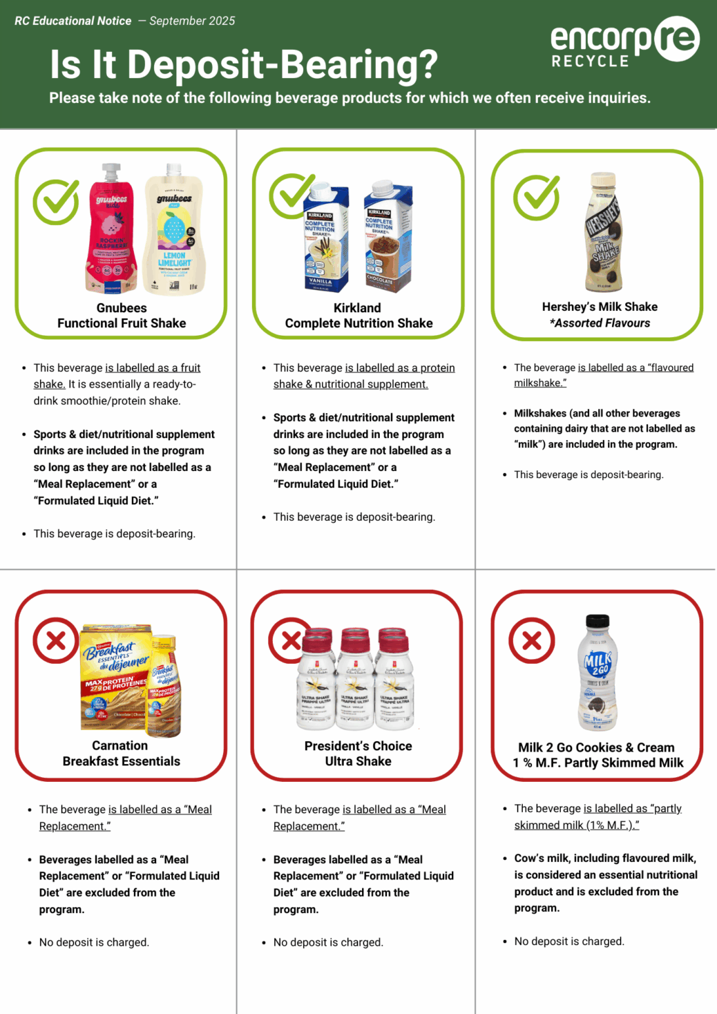 We are pleased to provide you with this helpful clarification regarding some beverage products for which we often receive inquiries related to inclusion/exclusion in the Beverage Containers Program.