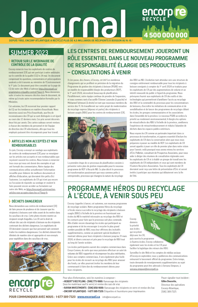 Encorp Atlantique envoie des mises à jour périodiques, des avis et des nouvelles via sa newsletter saisonnière – le Journal CR – ainsi que via des courriels ciblés.
