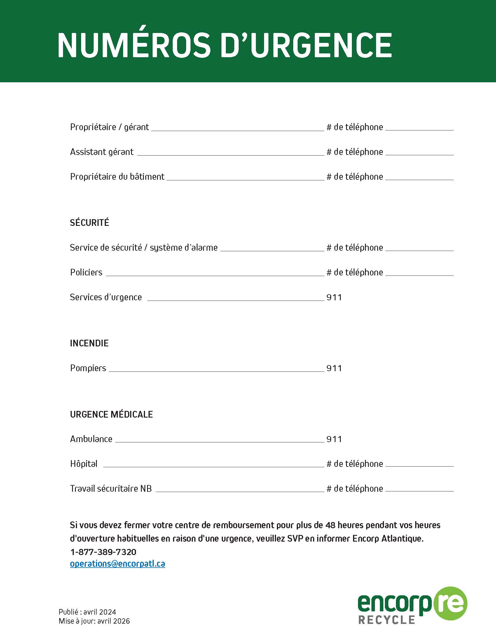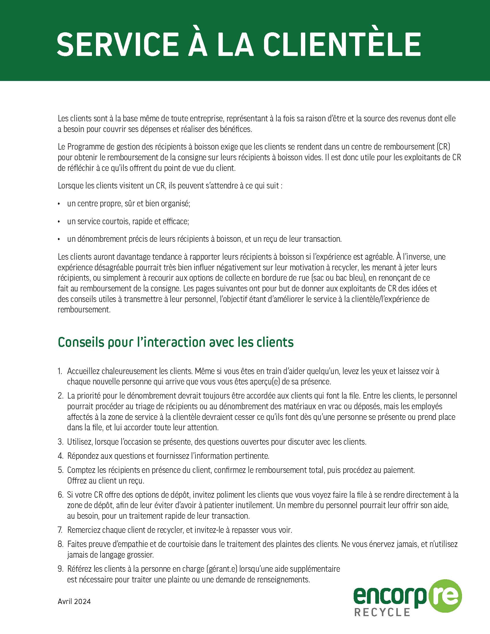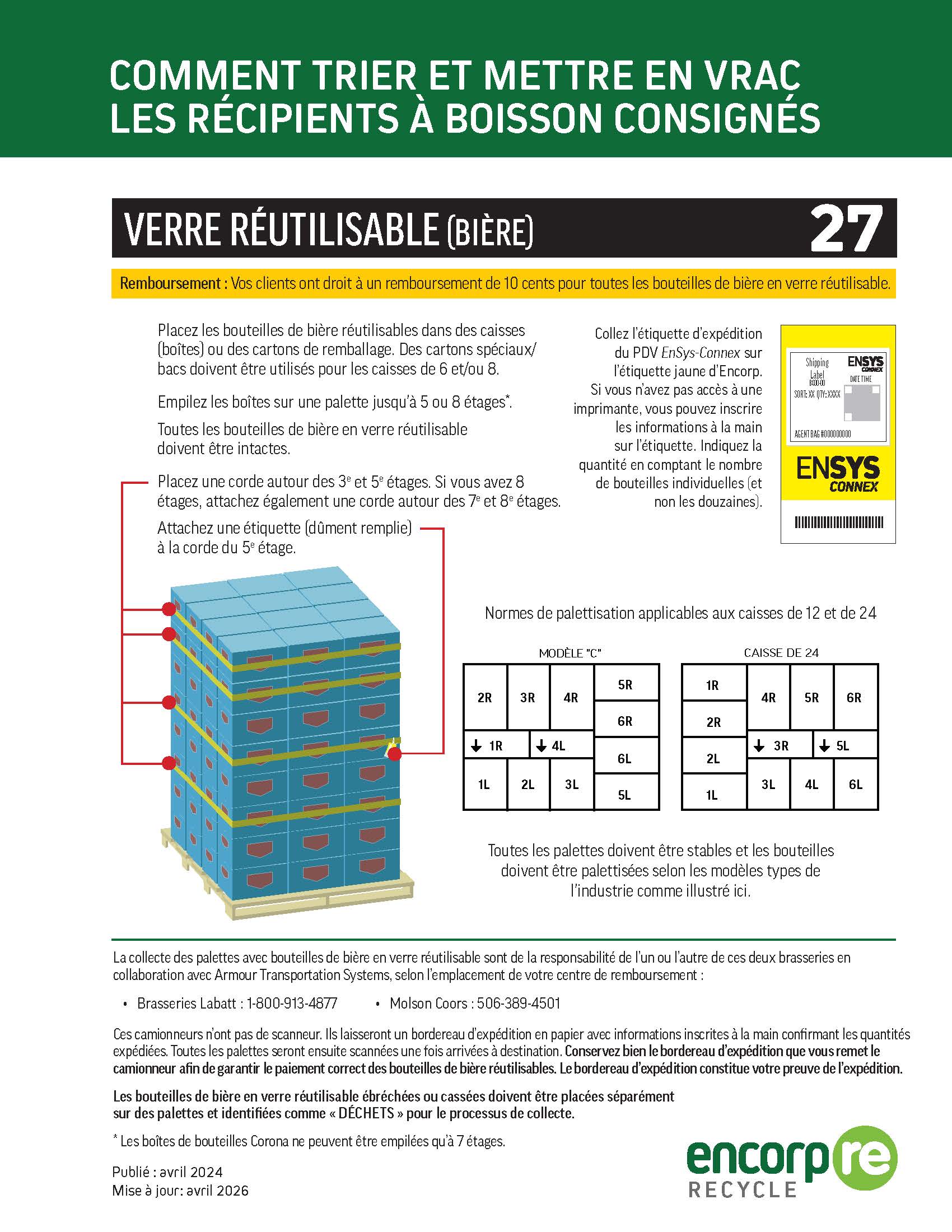 Tous les documents mis-à-jour du cahier des Opérations et logistique d’Encorp pour les centres de remboursement (CR) peuvent être téléchargés à partir de cette page Web en cliquant sur l’image appropriée.