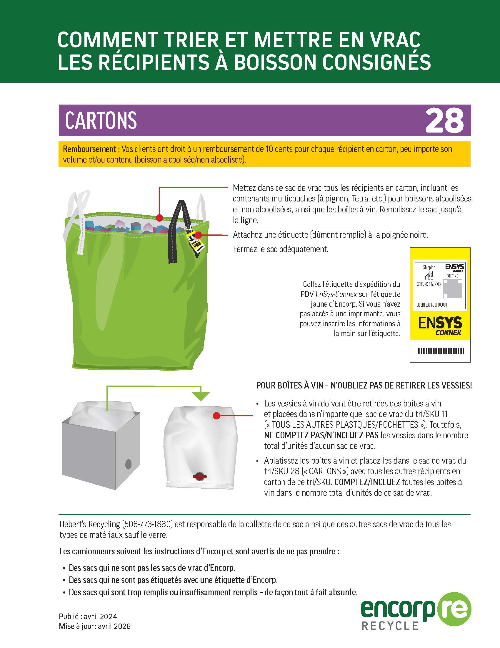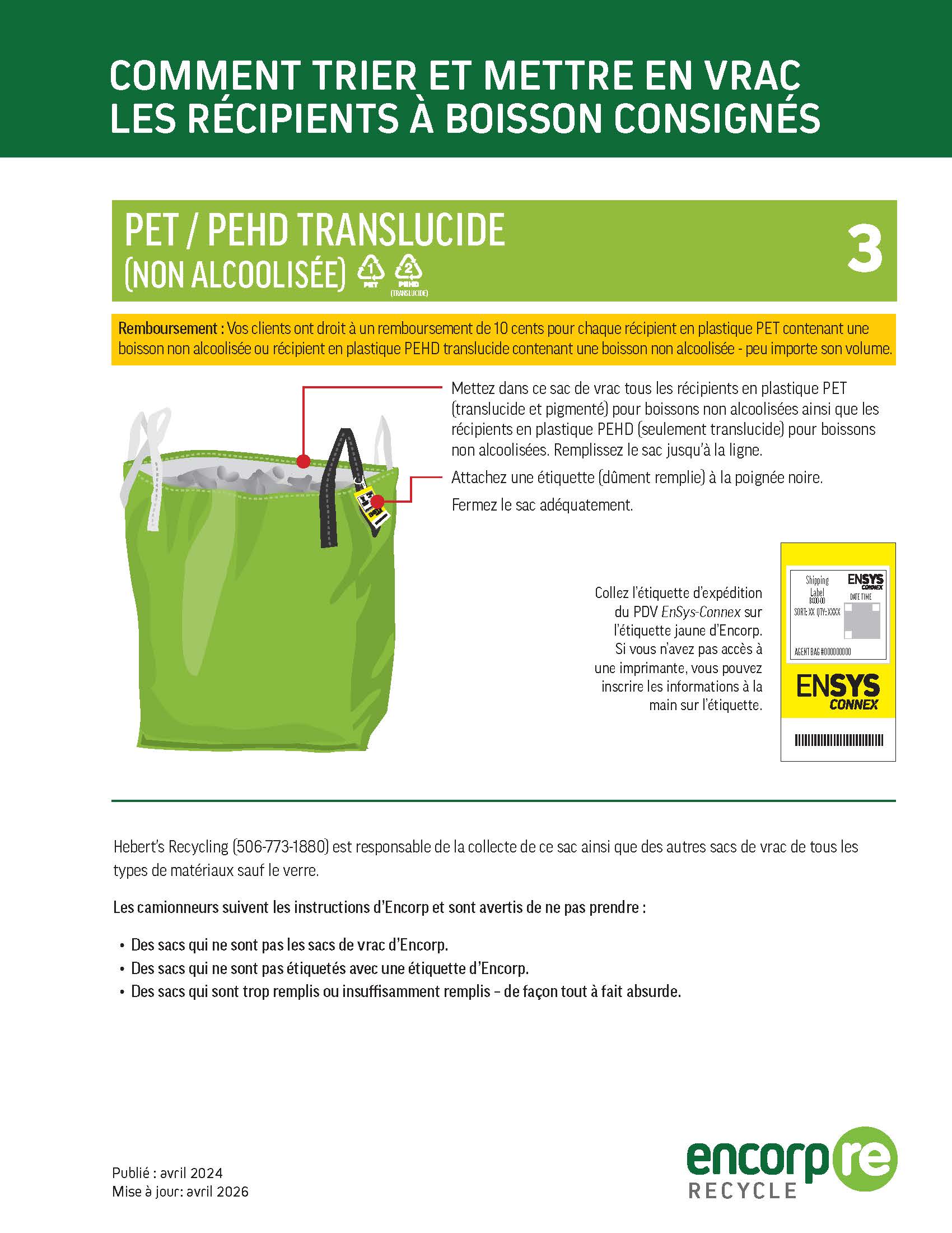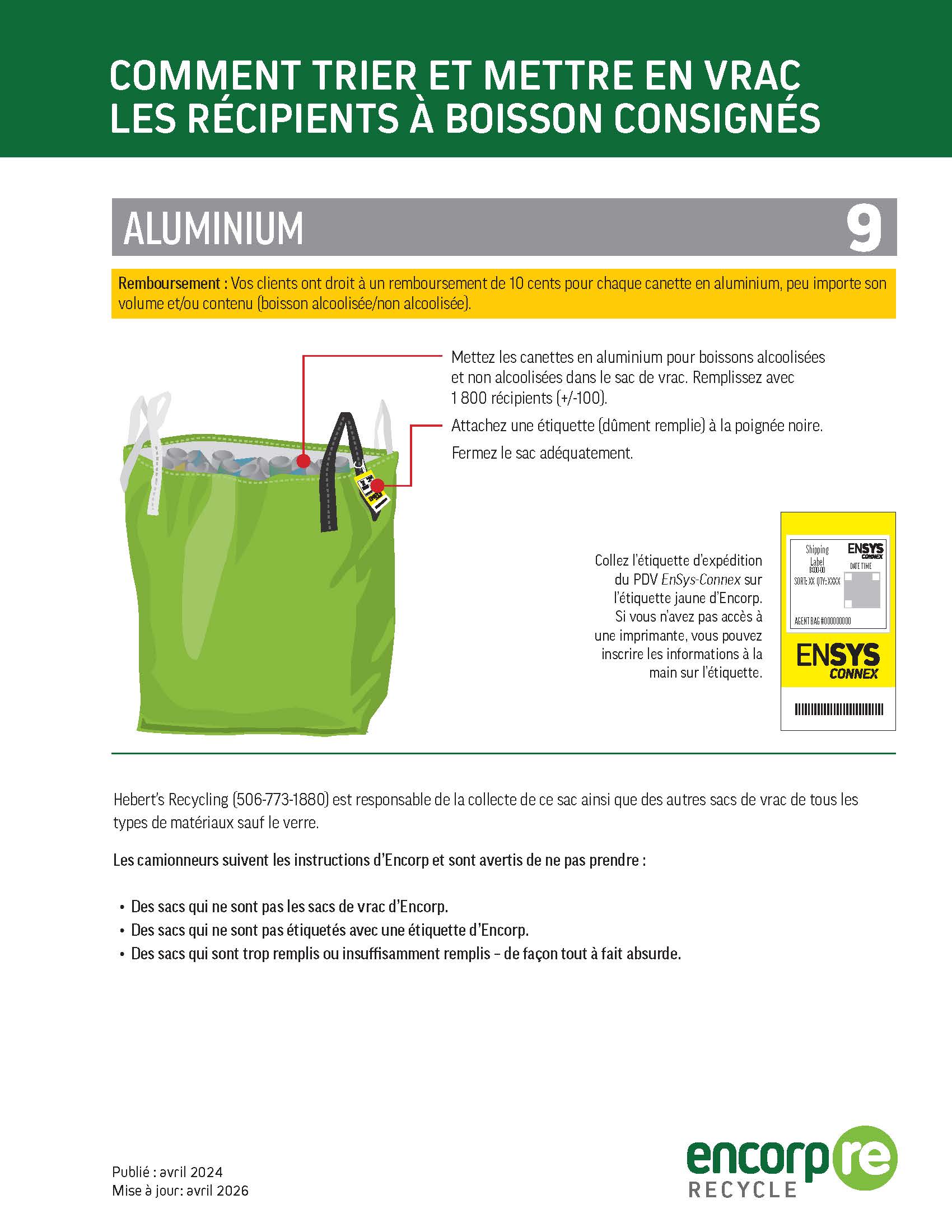 Tous les documents mis-à-jour du cahier des Opérations et logistique d’Encorp pour les centres de remboursement (CR) peuvent être téléchargés à partir de cette page Web en cliquant sur l’image appropriée.