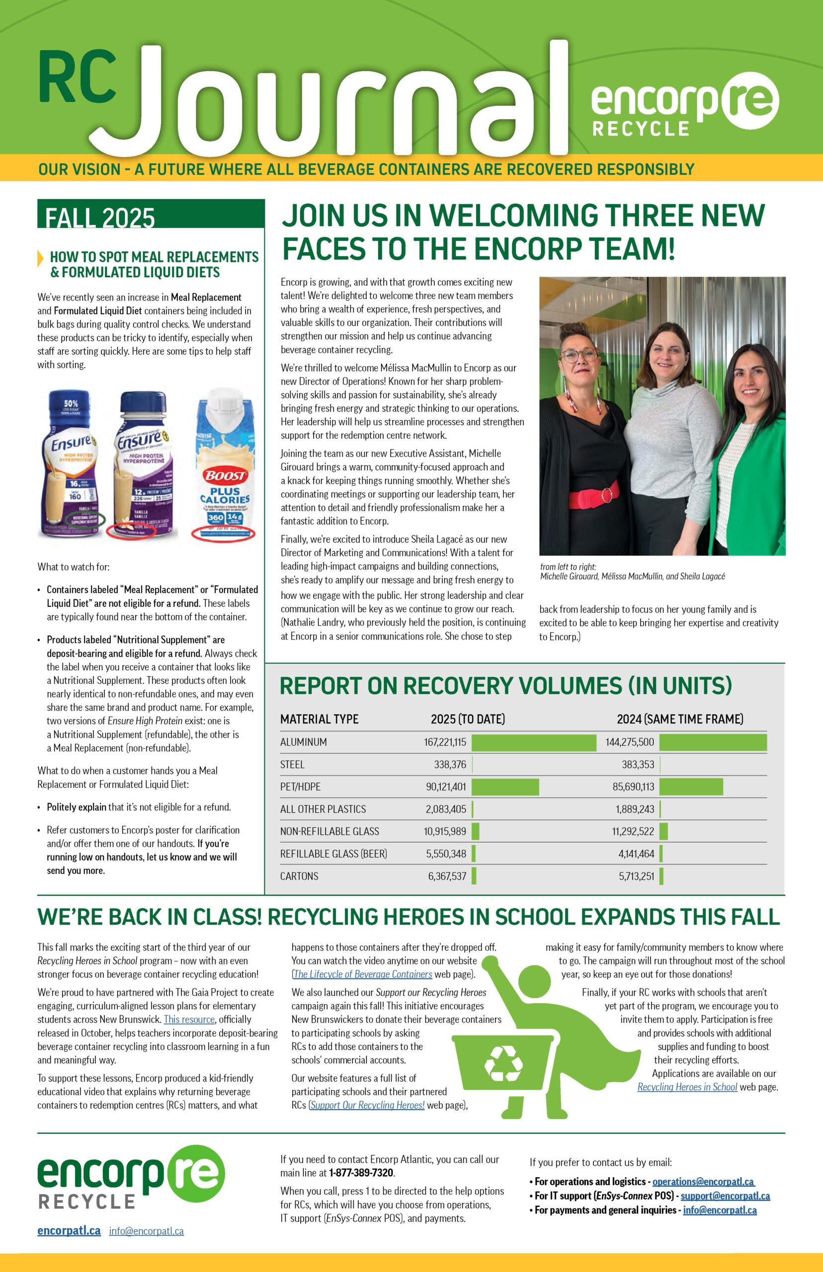 Encorp Atlantic sends periodic updates, notices and news to redemption centre operators via its seasonal newsletter – the RC Journal – as well as via targeted emails.